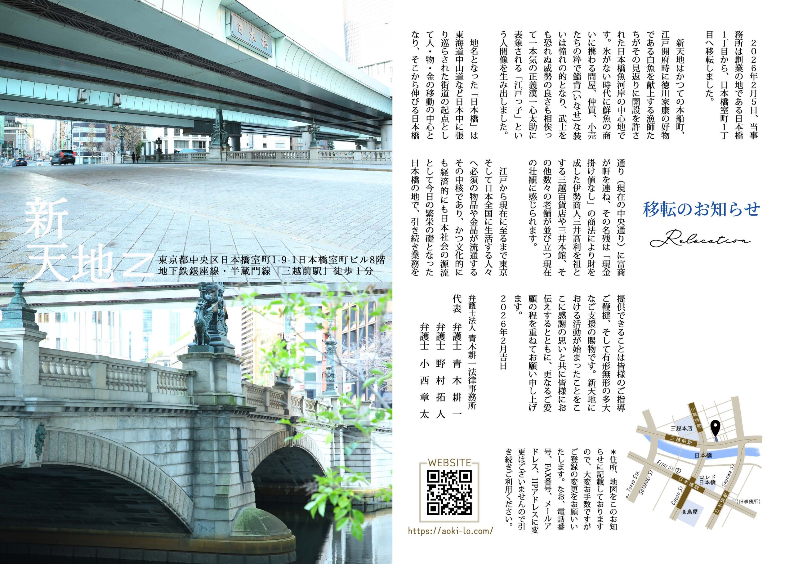 新所在地:〒103-0022 東京都中央区日本橋室町1-9-1 日本橋室町ビル8階 ※電話番号、FAX番号、メールアドレスに変更はありません。